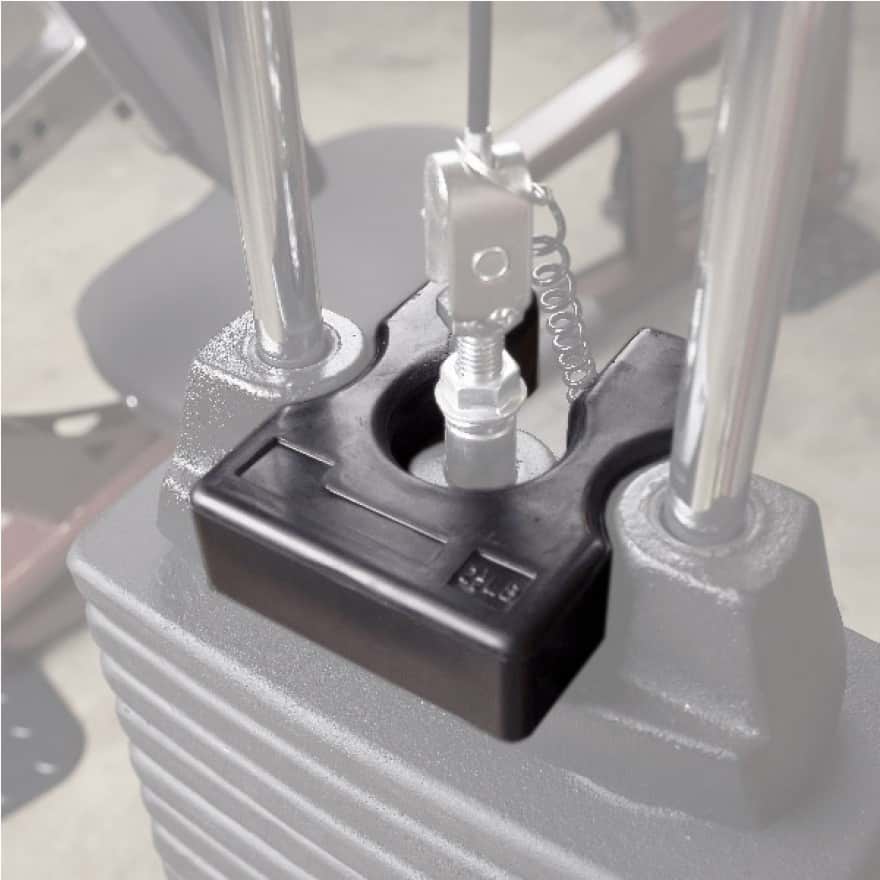 Die Body-Solid Abstufungsadapter eigenen sich perfekt zur feineren Abstufung des Gewichtspaketes, falls die Erhöhung des Trainingsgewichts durch die nächste Gewichtsplatte zu groß ist. Der Adapter kann dabei mit nur einem Handgriff auf das Kopfstück des Gewichtsblocks gelegt und wieder entnommen werden.
