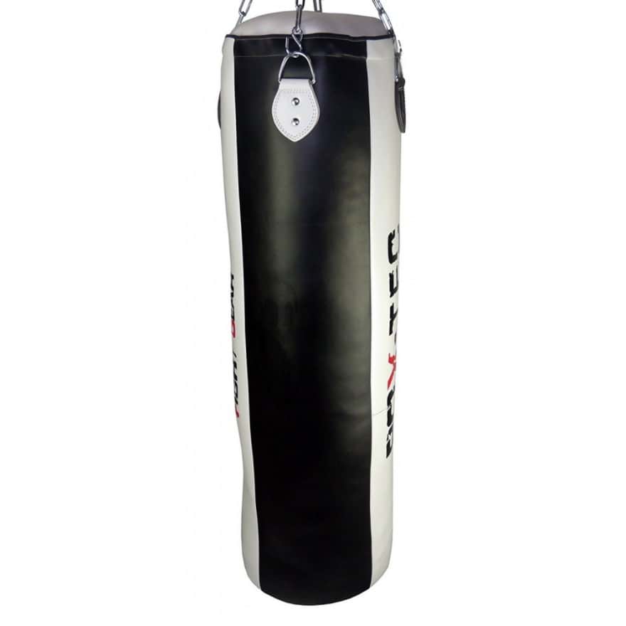 Ideal geeignet für das professionelle Training zu Hause oder im Fitnessstudio. Der Boxsack ist das perfekte Trainingsgerät für ein effektives Fitness-, Reaktions- sowie Kraft-Konditions-Training. Das Trainingsspektrum reicht vom Ausdauertraining bis hin zum gezielten Training spezieller Schlag- sowie Tritt-Techniken. Dank seiner Länge von 120cm ist der Boxsack sehr beweglich, pendelt gut und lässt somit auch eine Vielzahl an Variationen beim Beintraining zu. Der Sandsack besteht aus extrem strapazierfähigem Kunstleder und ist mit kleingeschnittenem Textil gefüllt, welches eine perfekte Balance zwischen Härte und Stabilität gewährleistet. Hochwertig verarbeitete Nähte mit reißfester Doppelnaht garantieren eine lange Lebensdauer. Inklusive Vierpunkt-Kette mit Drehwirbel (ca. 45cm).