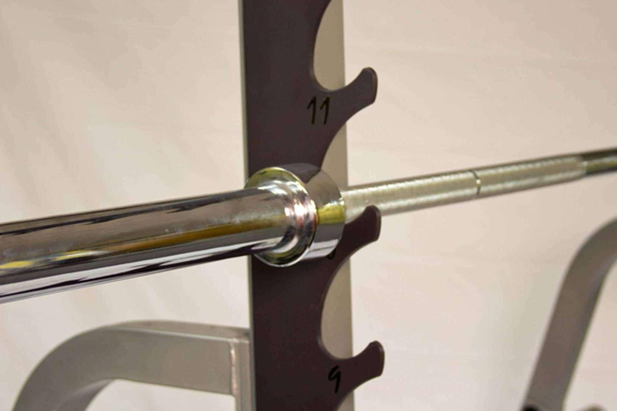 - 14 Ablagepositionen am Gun-Rack ermöglichen einseitige auf und ab Bewegungen, ohne die Hantelscheiben zu entladen oder die Hantelstange im Ganzen zu bewegen