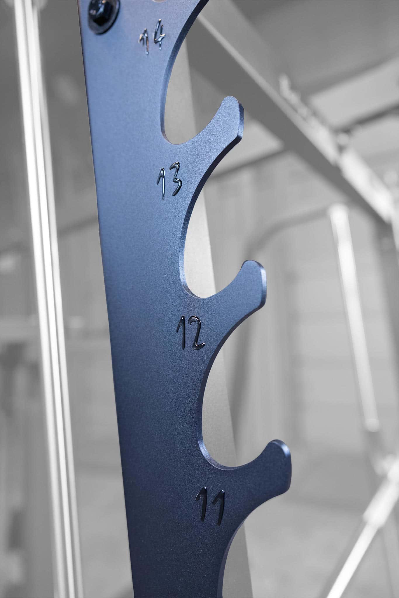 Die geführte, 11kg schwere Hantelstange mit 50mm-Scheibenaufnahmen läuft über Industrie-Kugellager und ist somit komplett friktions- und wartungsfrei. Dabei wird die Hantelstange mit einer einfachen 15°-Drehung aus der Verankerung aus bzw. eingehakt. Um die Verletzungsgefahr zu minimieren garantieren während der Übungsdurchführung die höhenverstellbaren Sicherheitsablagen maximale Sicherheit. 6 Aufnahmedornen sowie ein 50mm-Stangenhalter bieten zudem genügend Möglichkeiten Ihr Trainingsequipment platzsparend zu lagern.