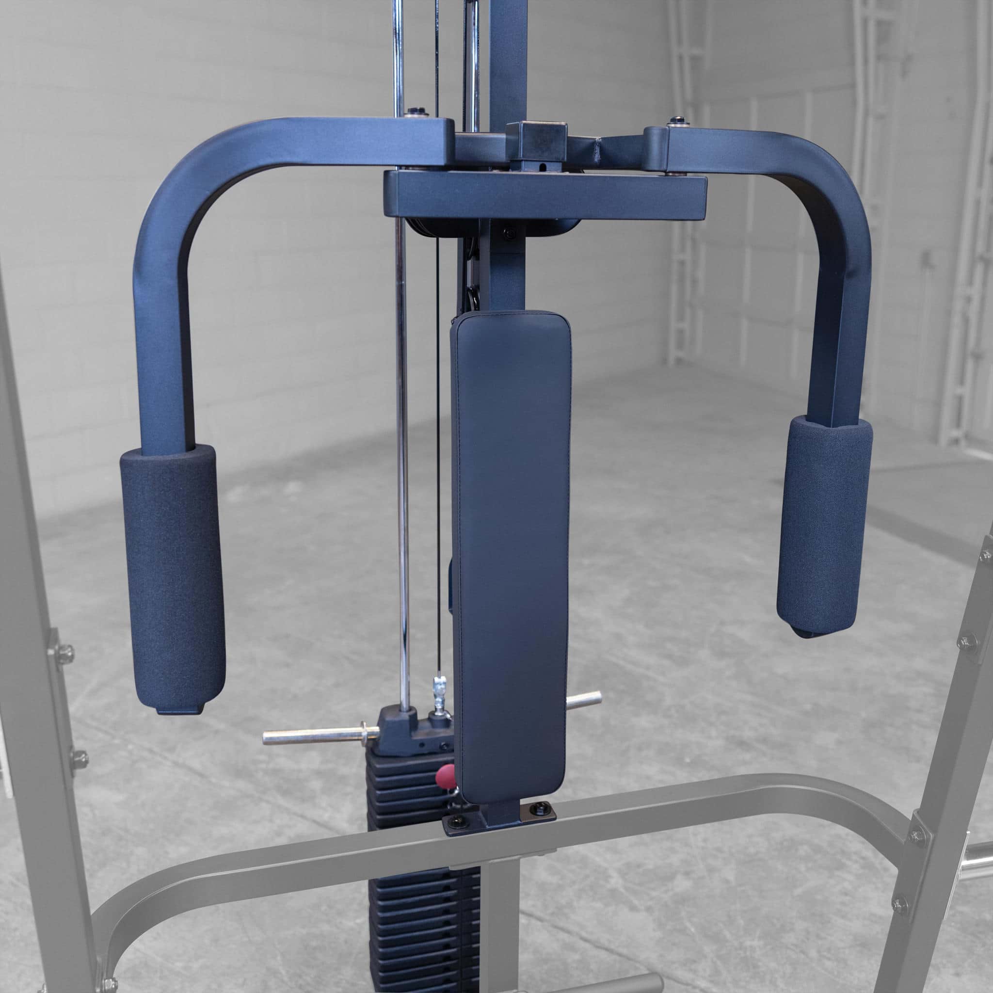 Das Body-Solid GS-348 besteht aus einer Multipresse mit Linear-Kugellagerung und einem Press-Rack für das Training mit freien Gewichten. Sowohl die Multipresse als auch das Rack verfügen dabei über mehrere Ablagemöglichkeiten (20 bzw. 14) auf unterschiedlichen Höhen. Die Multipresse sowie das Gun-Rack ist um 7° angewinkelt, um dem natürlichen Bewegungsablauf z.B. beim Kniebeugen oder Nackendrücken entgegen zu kommen.