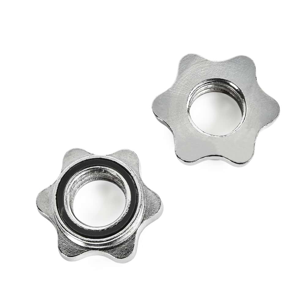 - Sicherung der Gewichtsscheiben erfolgt mit Stern-Schraubverschlüssen, die mit einem Gummiring sauber an der Scheibe abschließen