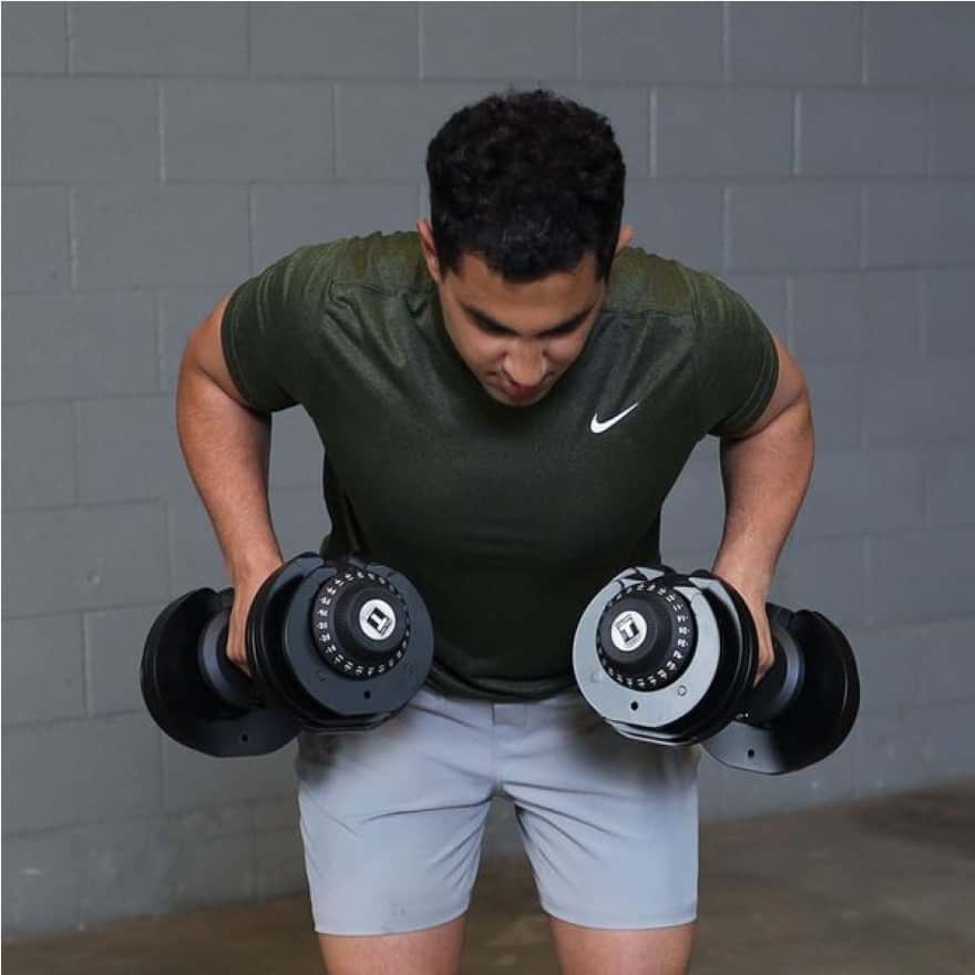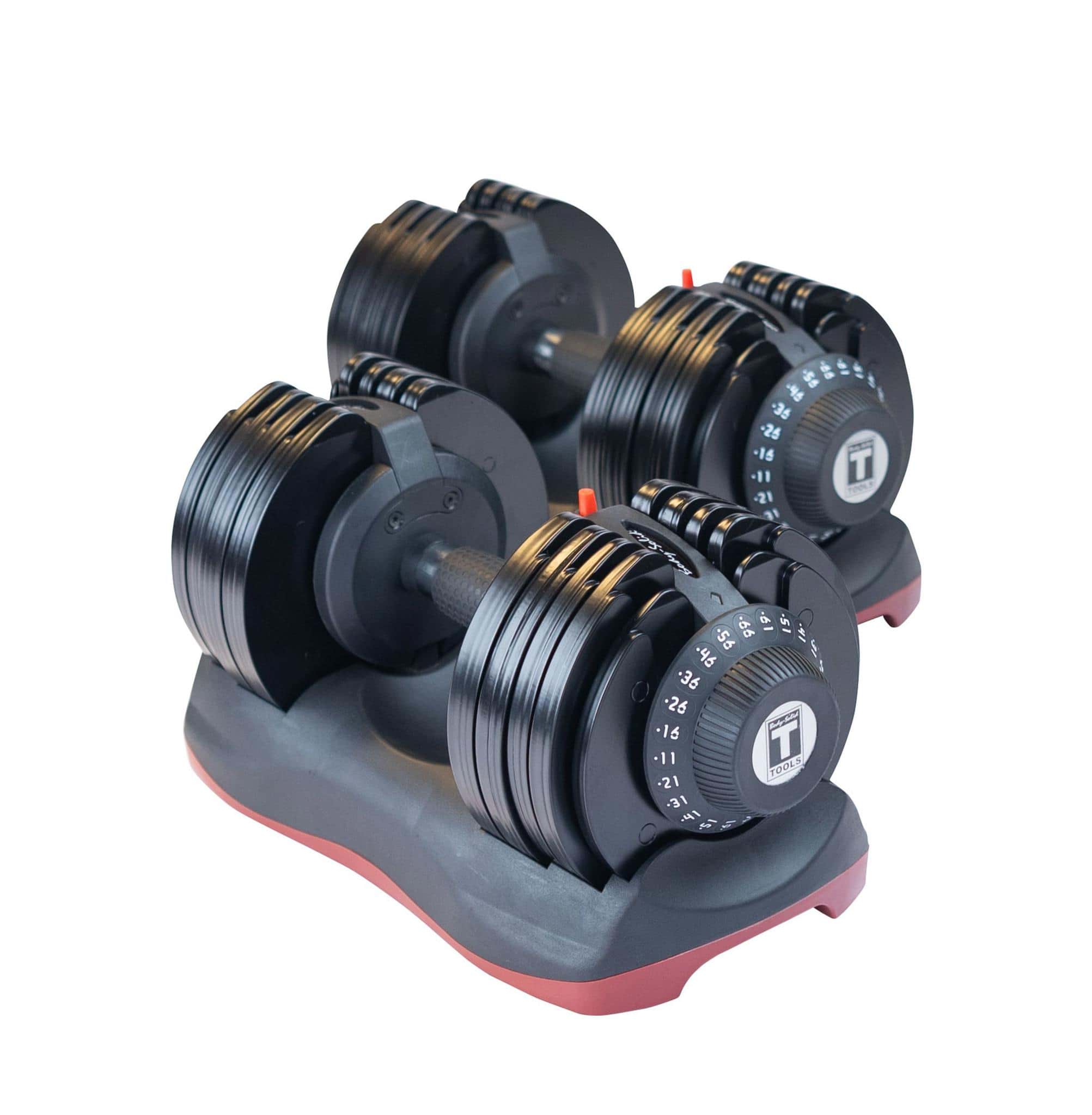 Das verstellbare Kurzhantelpaar ersetzt ein komplettes Hantelset – mit der Funktionalität von 15 einzelnen Paaren bei minimalem Platzbedarf.