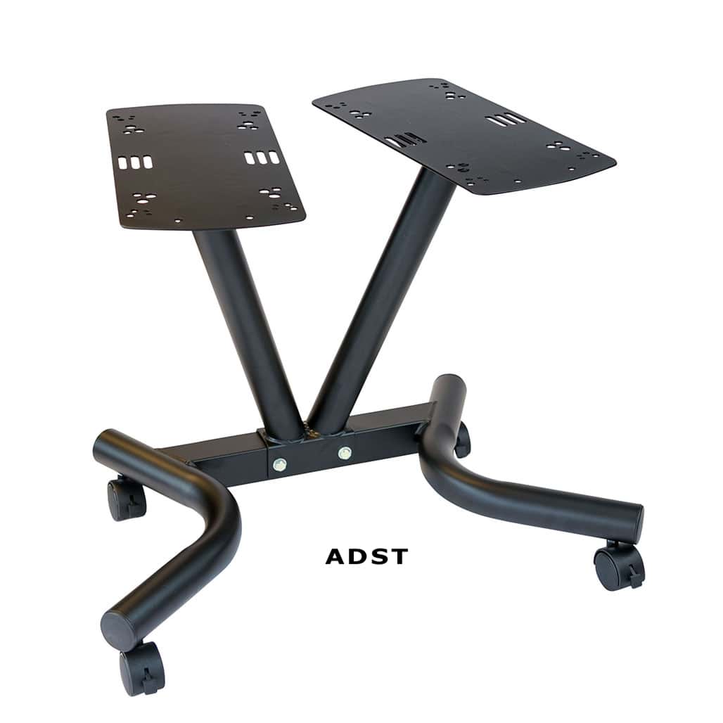 Die optionale Kurzhantelablage ADST mit feststellbaren Rollen erleichtert die Aufbewahrung und den Transport.